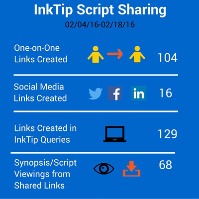 Here’s how InkTip writers have shared links over the last 2 weeks using Script Share (February 4th 2016 to February 18th 2016):