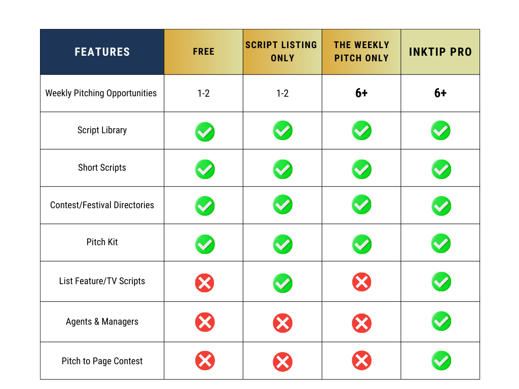 opportunities in your InkTip account and sent to your inbox from filmmakers actively seeking scripts. As a subscriber to The Weekly Pitch, you have access